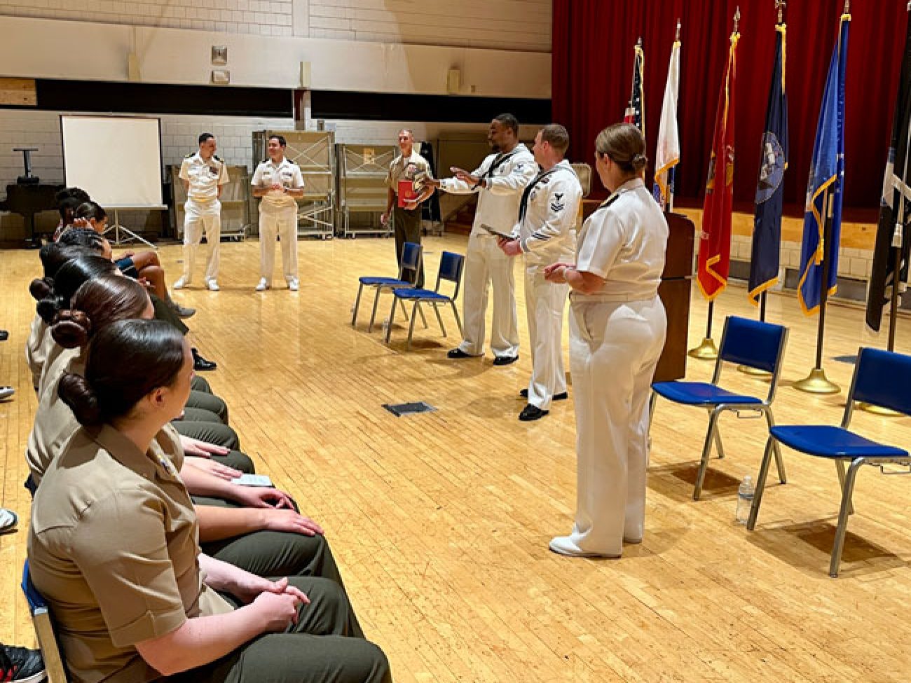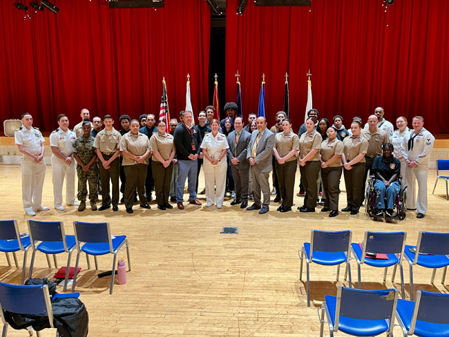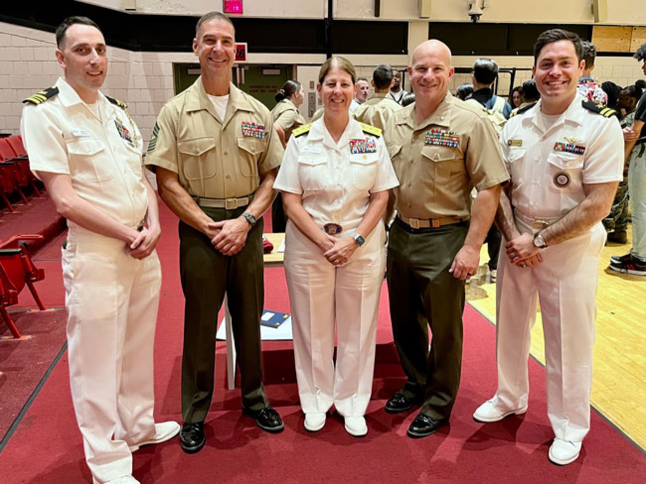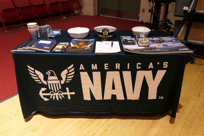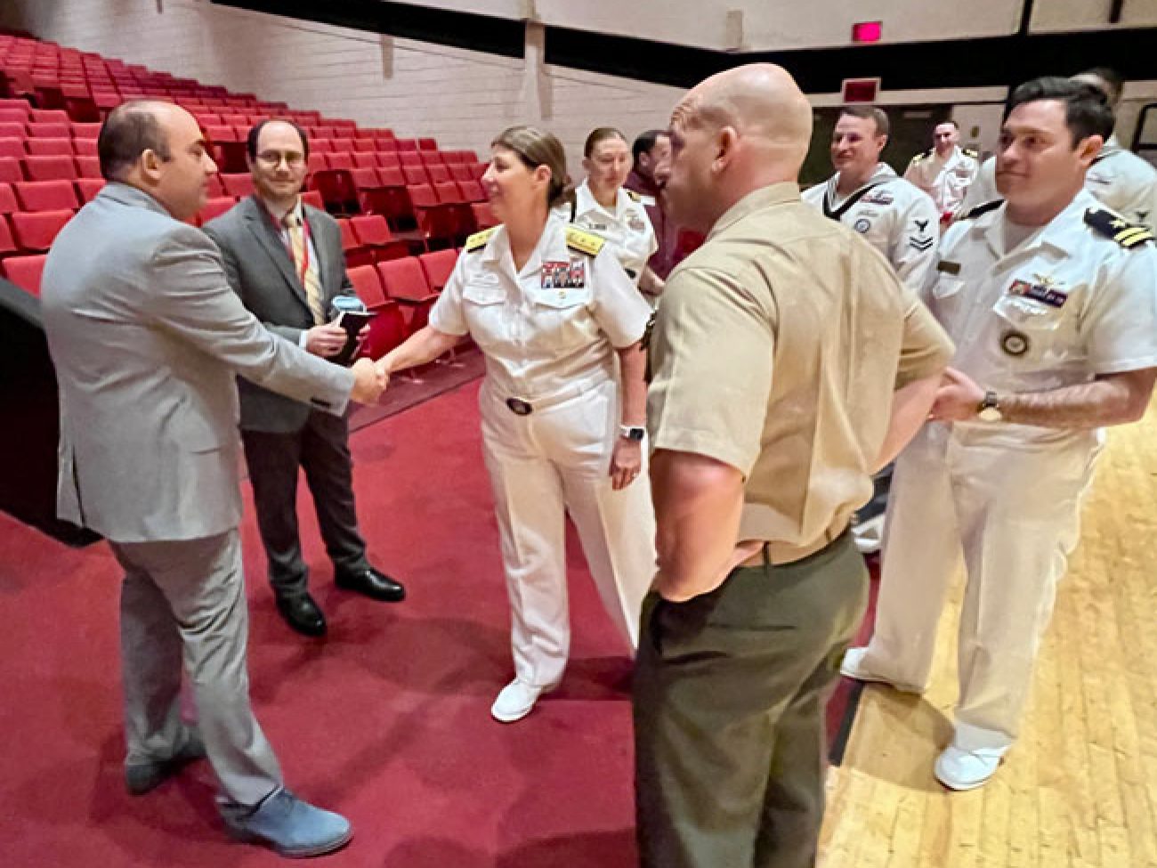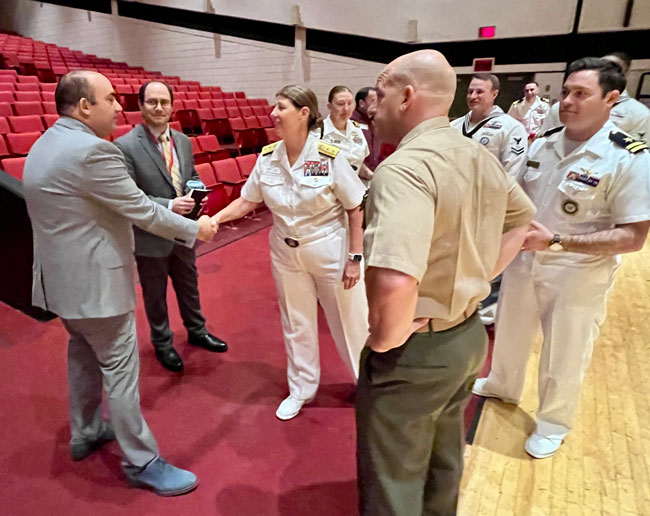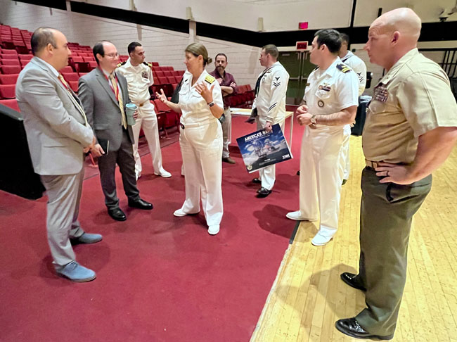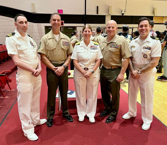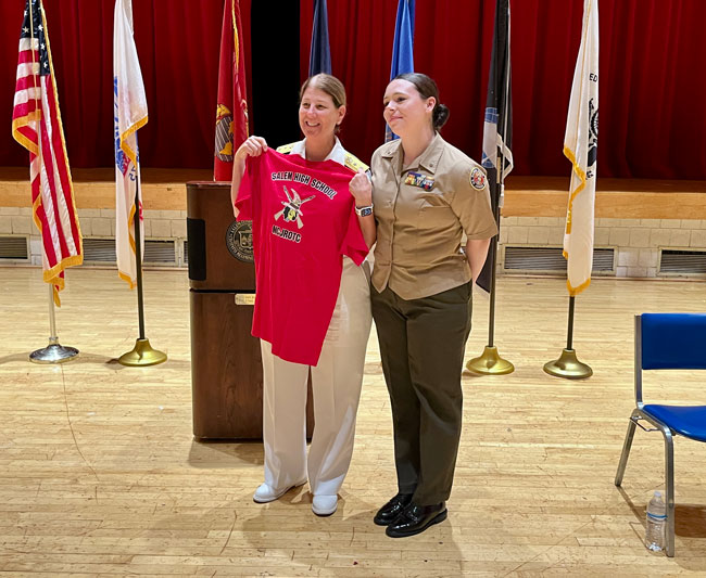 Among the Naval officers on hand was Lieutenant Commander Michael Brickley, a member of the SHS Class of 2000, who is currently an executive aide to Admiral McClelland. Officers later met with JROTC students to engage and answer further questions.
