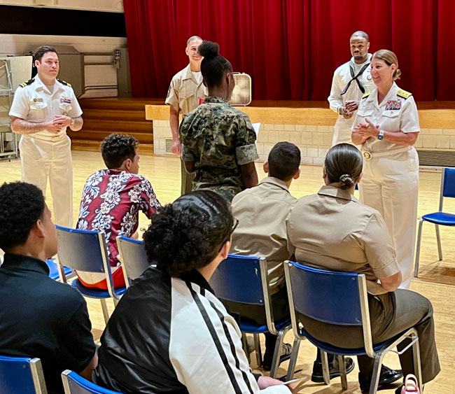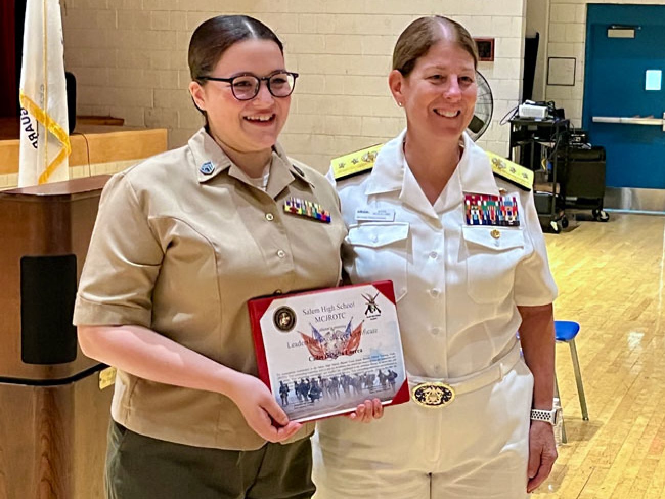 Rear Admiral Jacquelyn McClelland Visits Salem High School JROTC Students