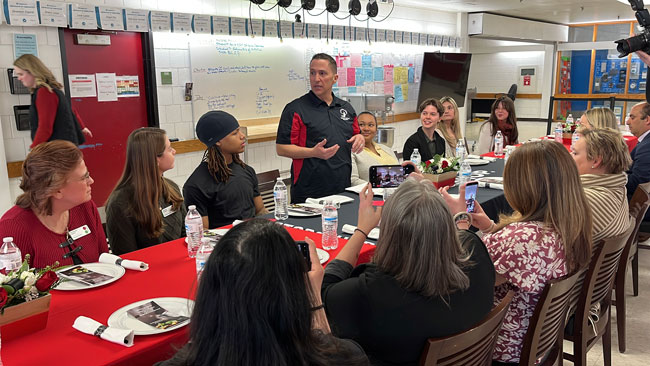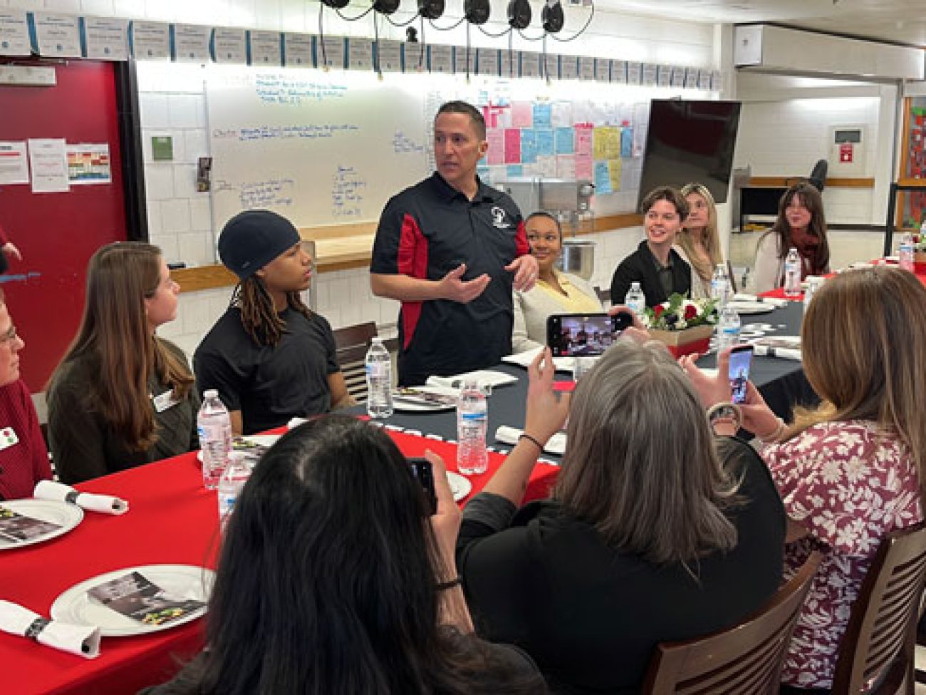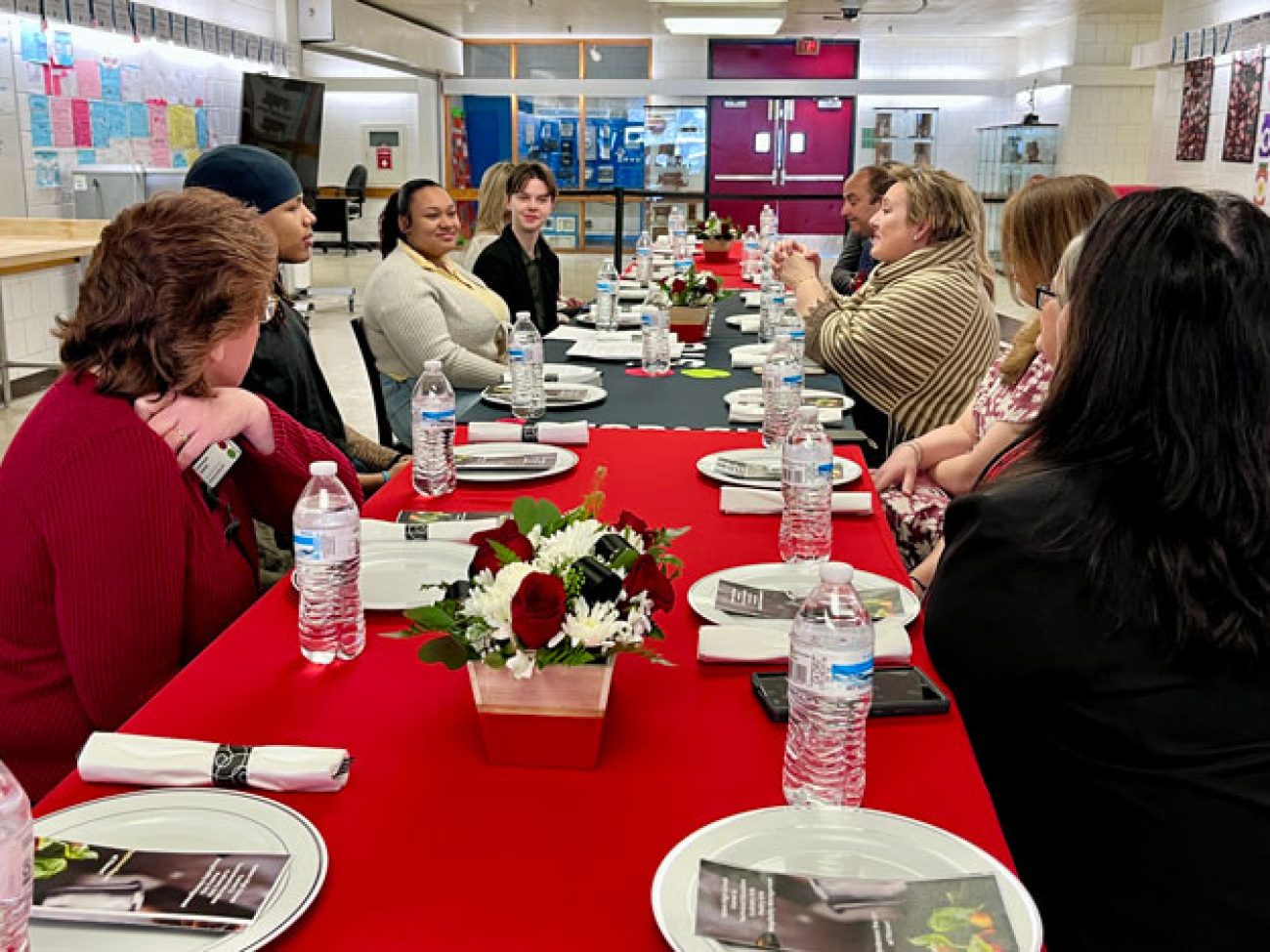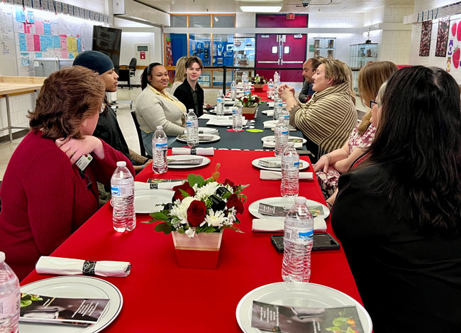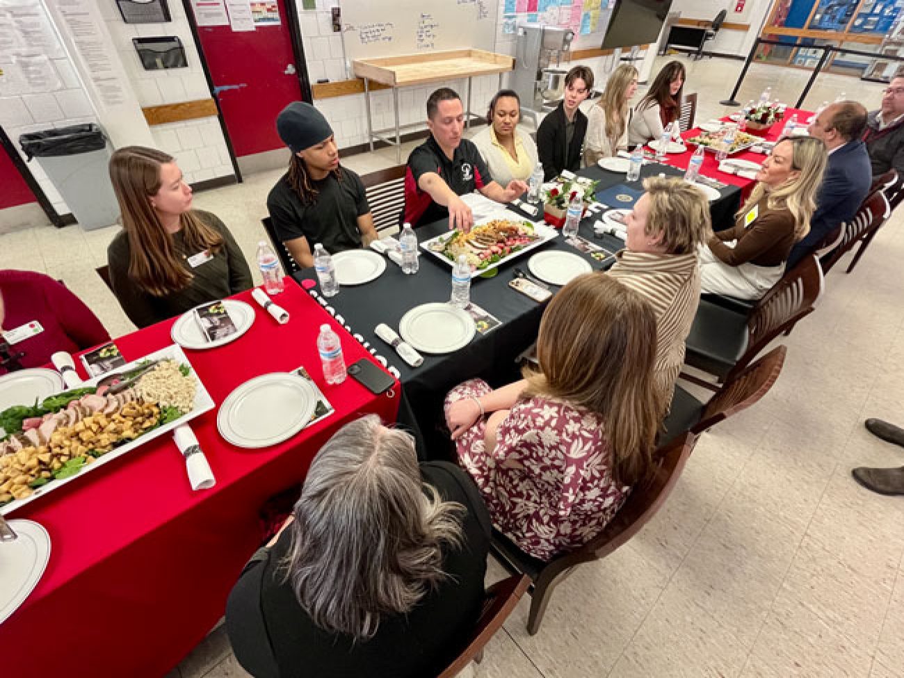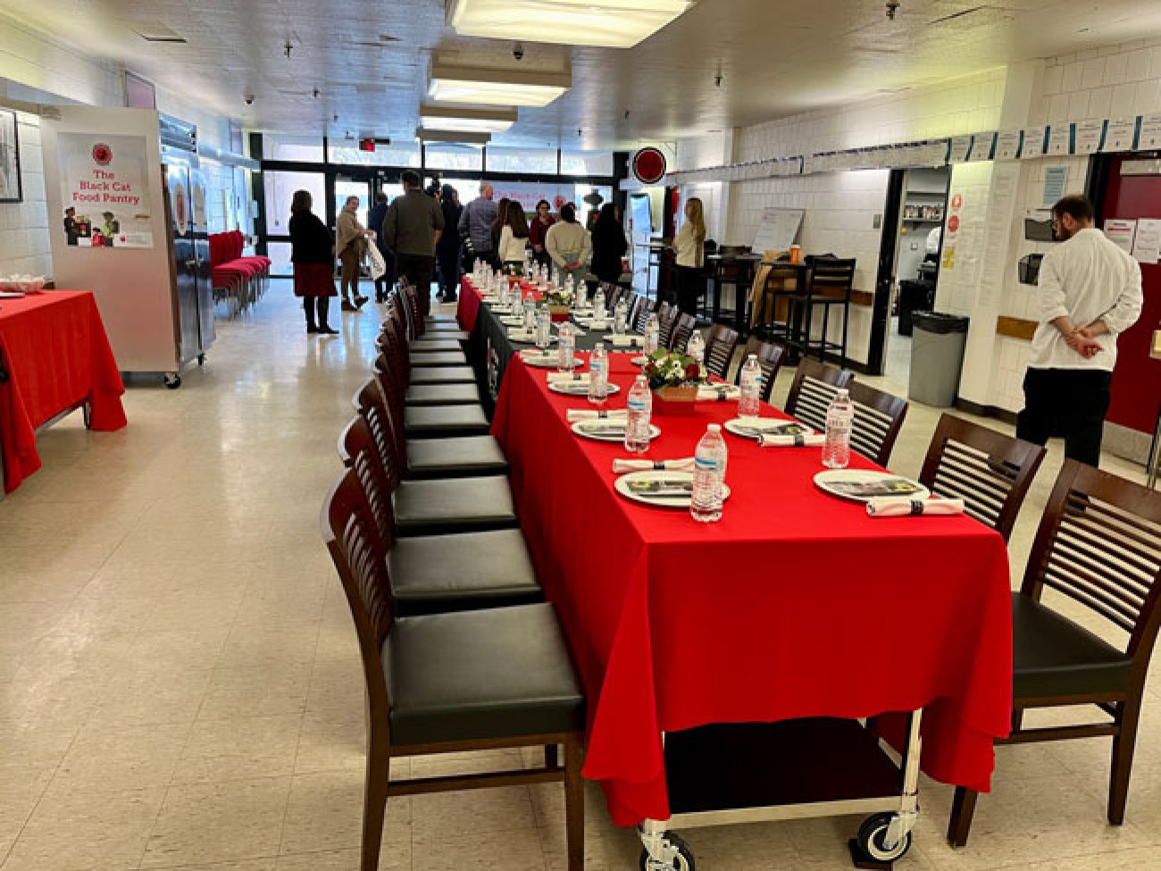 On Wednesday afternoon, SHS Lead Culinary Instructor and Career Technical Education (CTE) Coordinator Jeff Stuart hosted a ‘family dinner’ to celebrate the opening of the Black Cat Food Pantry, located on the first floor outside the Black Cat Bistro restaurant and the Culinary Arts program facilities.