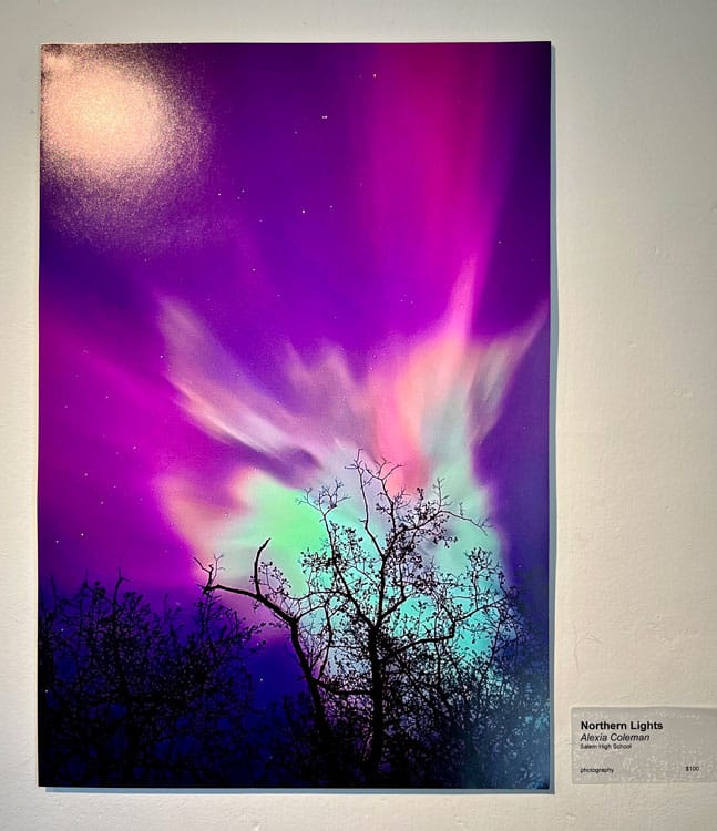 Ms. Coleman’s ‘Northern Lights,’ is a stunning photograph presumably taken during the rare Aurora Borealis appearance on the North Shore over the summer. The image marked her second selection in as many years for the Through the Student Lens exhibit after her photograph titled ‘Pinhole and Positive Pinhole’ was selected a year ago.