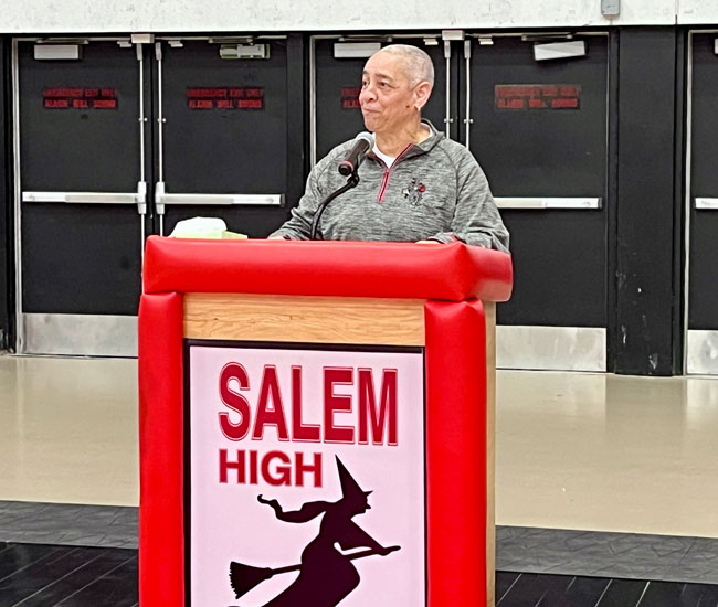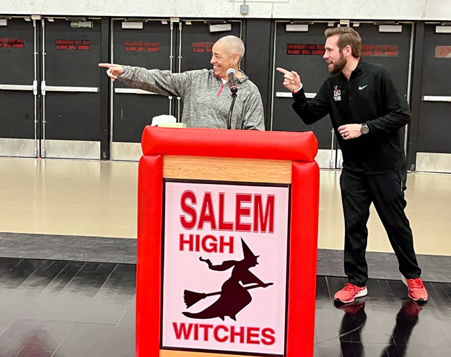 Three retired numbers grace the wall of the Salem High School: One of a former NBA player, one of an NBA draft selection and, as of Friday, the greatest women’s basketball player in SHS history now an all-star educator, coach and mentor.