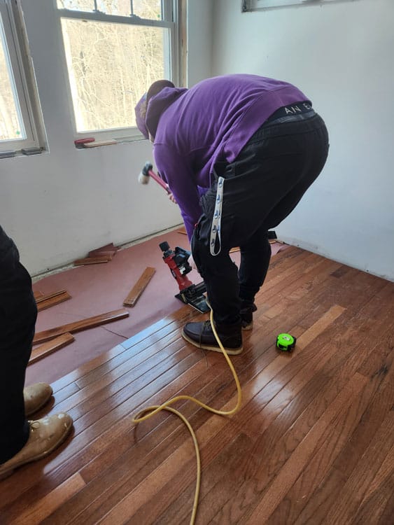 From 9 a.m. until 2 p.m., they’ll lay hardwood flooring, build an exterior deck, and paint interiors and exteriors among many other tasks.