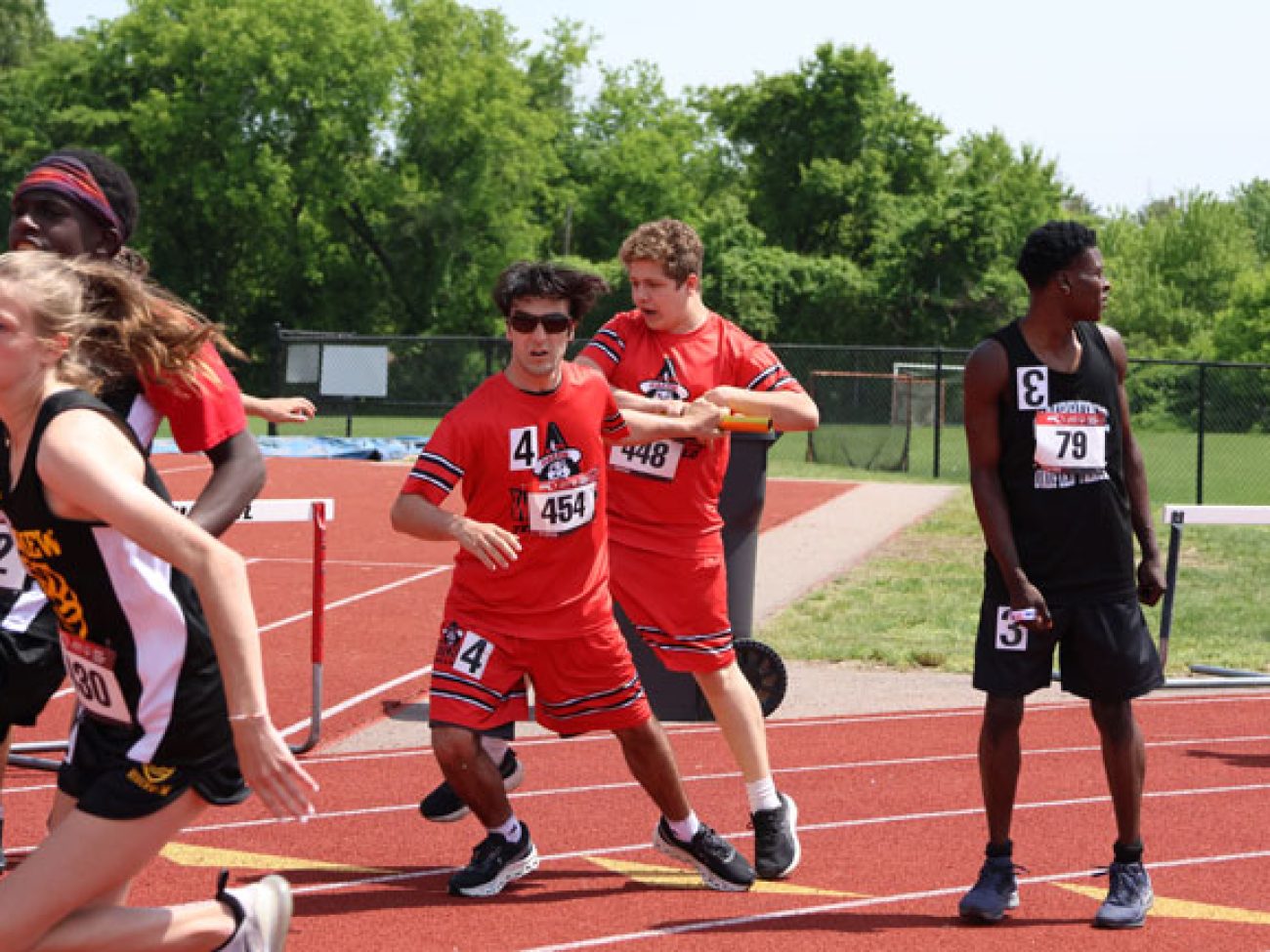4X100 meter relay team dashes to school record 57.09