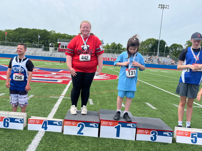 NATICK (June 3, 2025) – Freshman Sara Balkus shared the Division 1-3 shot put title and finished runner-up in the Division 1-2 Mixed 100 meter dash to lead the Salem High School Unified Track and Field teams at the Massachusetts Interscholastic Athletic Association (MIAA) Unified Track and Field Championship Wednesday, May 28, at Natick High School.