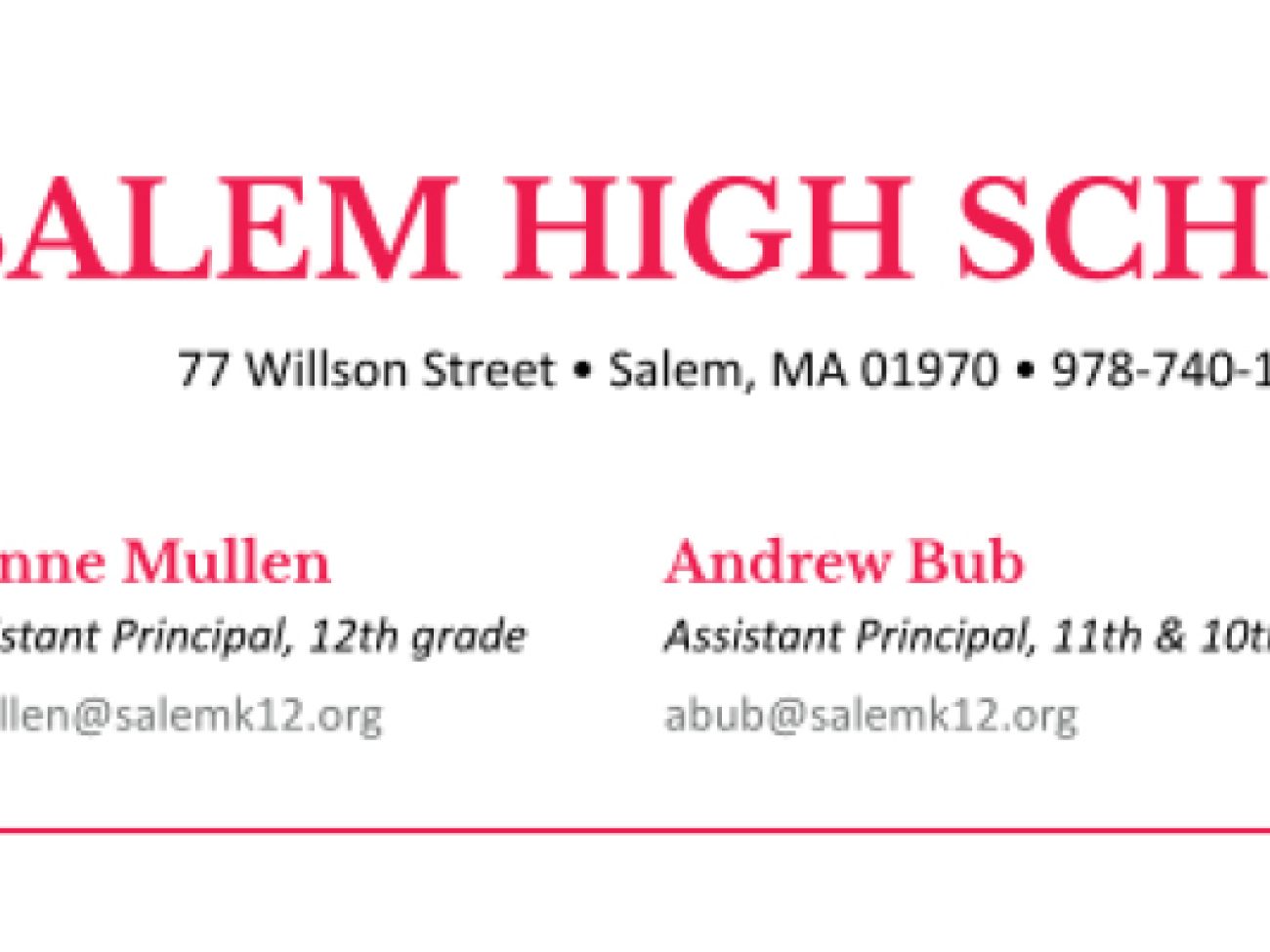 Dear Salem High School Community, I hope this message finds you all well and excited for the Class of 2023 Commencement. I am writing to...