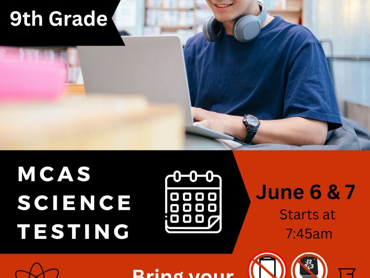 Hello SHS Caregivers & Scholars, Tomorrow is the 9th Grade Science MCAS Testing: Testing will run through third block on Wednesday June 7, 2023 Students...