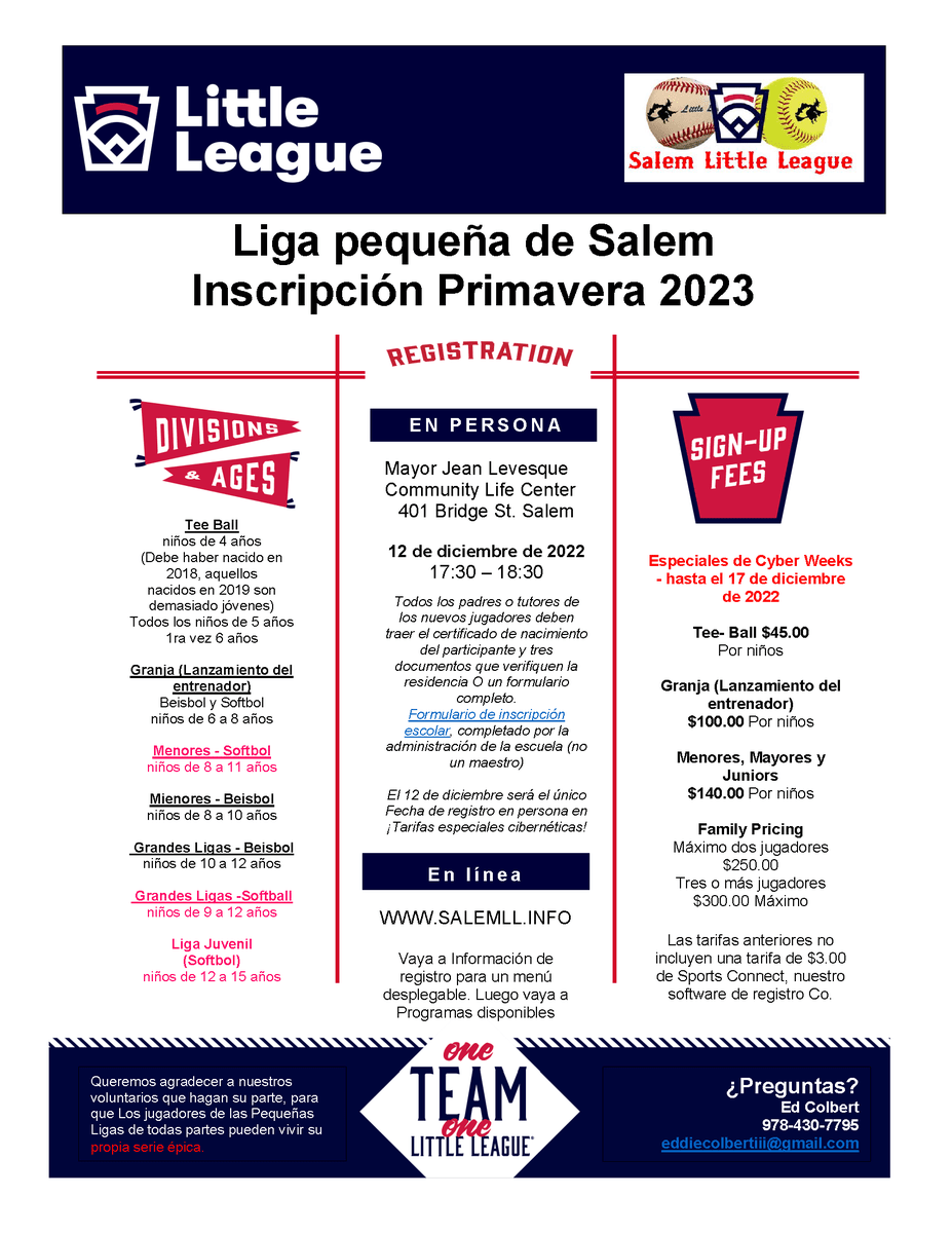 Liga pequeña de Salem Inscripción Primavera 2023