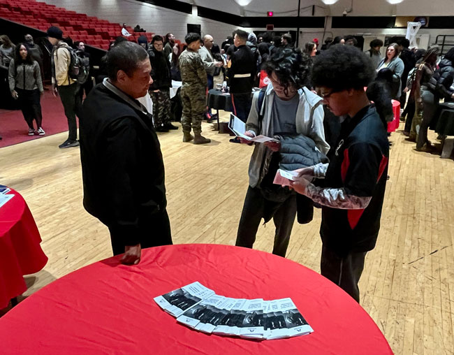 On Wednesday, Feb. 11, Career Technical Education (CTE) Month at SHS continued with its Career Panel at which more than 20 professionals from different companies, small businesses, the military, and higher education spoke to SHS scholars about internships, co-ops, and postgraduate opportunities.