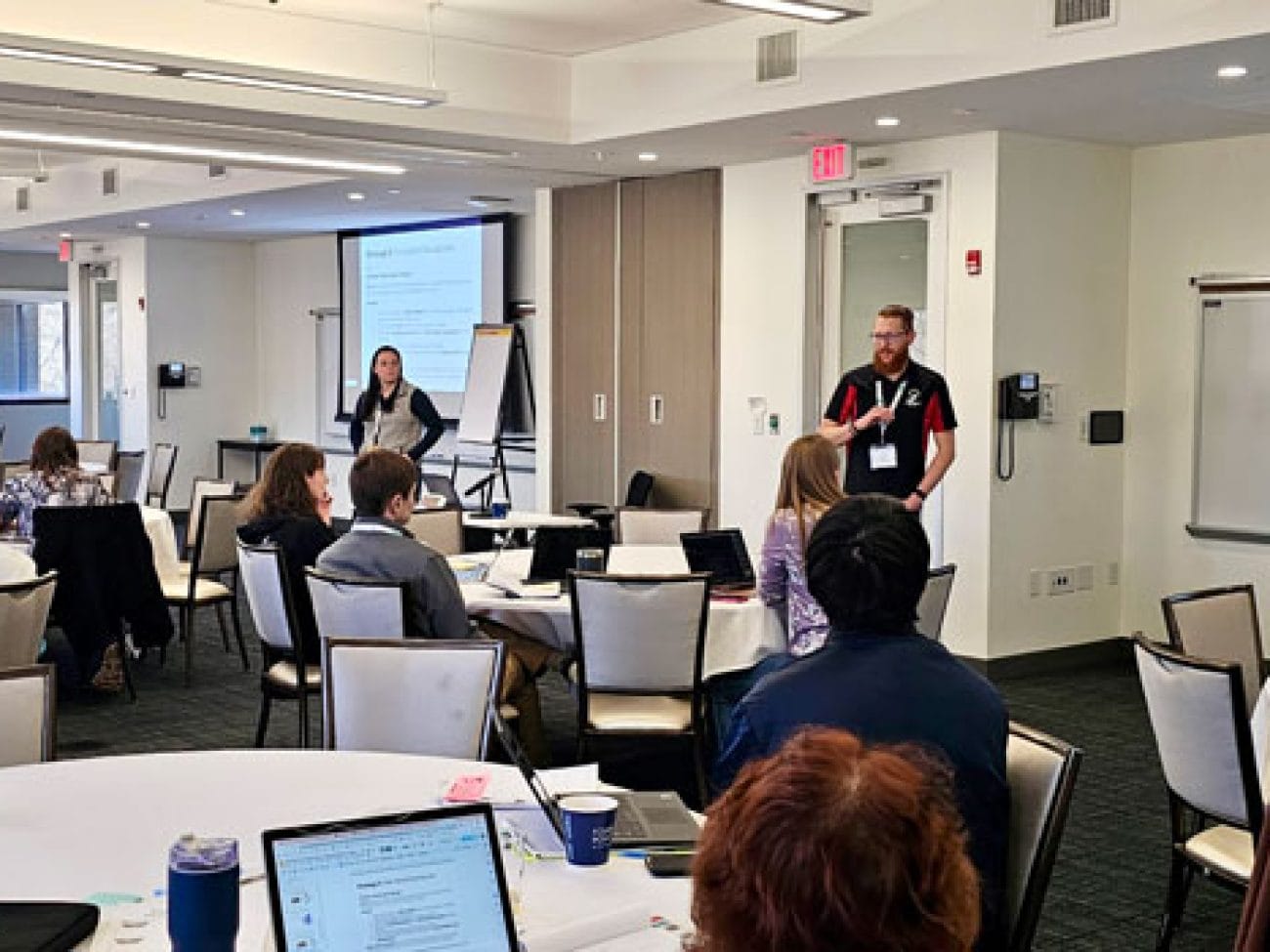 Mr. Yeager partnered with Katie Cunningham, an information technology instructor at Blackstone Valley Regional Vocational & Technical High School, to deliver the presentation, ‘Creating a Collaborative Classroom.’