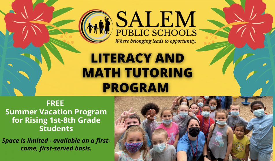 2. The second update is an announcement that the district will be offering a stand-alone math and literacy tutoring program for students entering Gr. 1-8 in the 2022-2023 school year.  Learn more here.  (NOTE: If your child is already enrolled in a Salem Public School summer program, many already include tutoring as part of that program.)