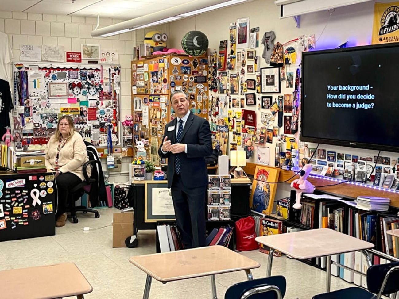 SALEM — Essex County Superior Court Judge Salim Tabit spoke to a Salem High School criminal justice class about his occasionally difficult, but invariably rewarding experiences serving as a judge during a visit Friday morning to their classroom.